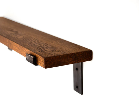 Solid Oak Shelf with Lipped Steel Brackets 15cm Deep